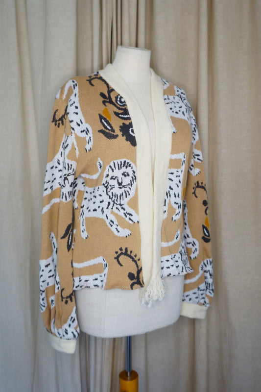 Kurzer Kimono aus Baumwolle – Beige mit Löwenmotiv | Unikat
