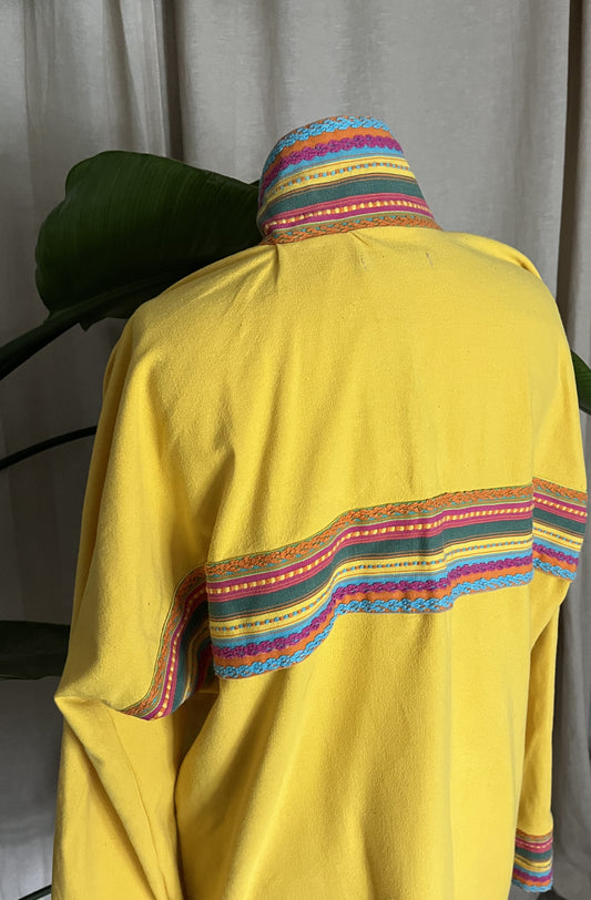 Midi Kimono aus Baumwolle – Vintage Boho Kimono in Gelb | Unikat