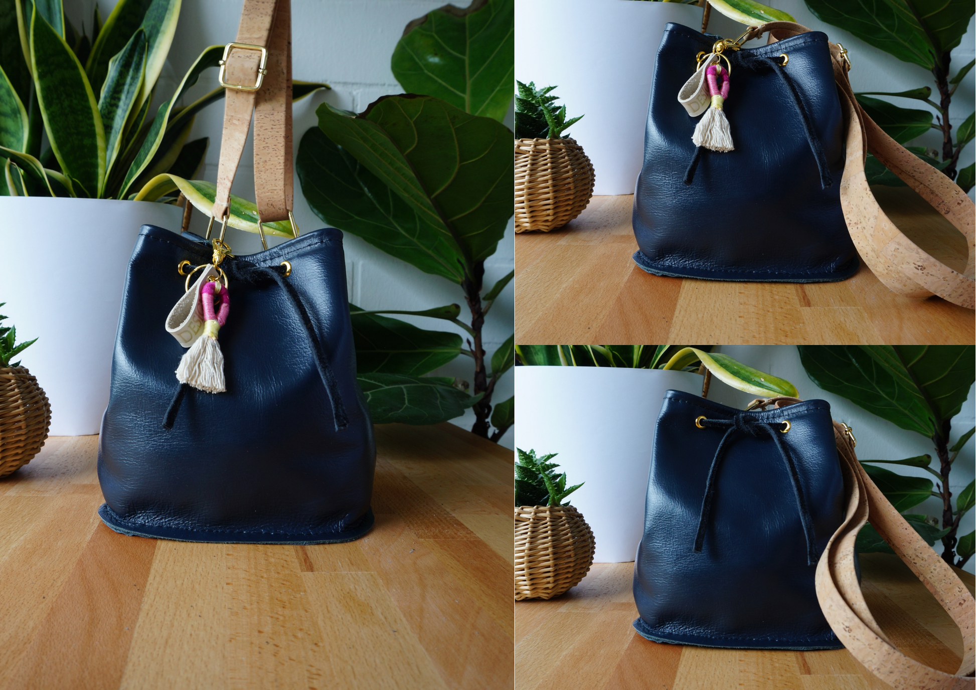 • Mit verstellbarem Gurt aus portugiesischem Korkleder, Länge 60-120 cm