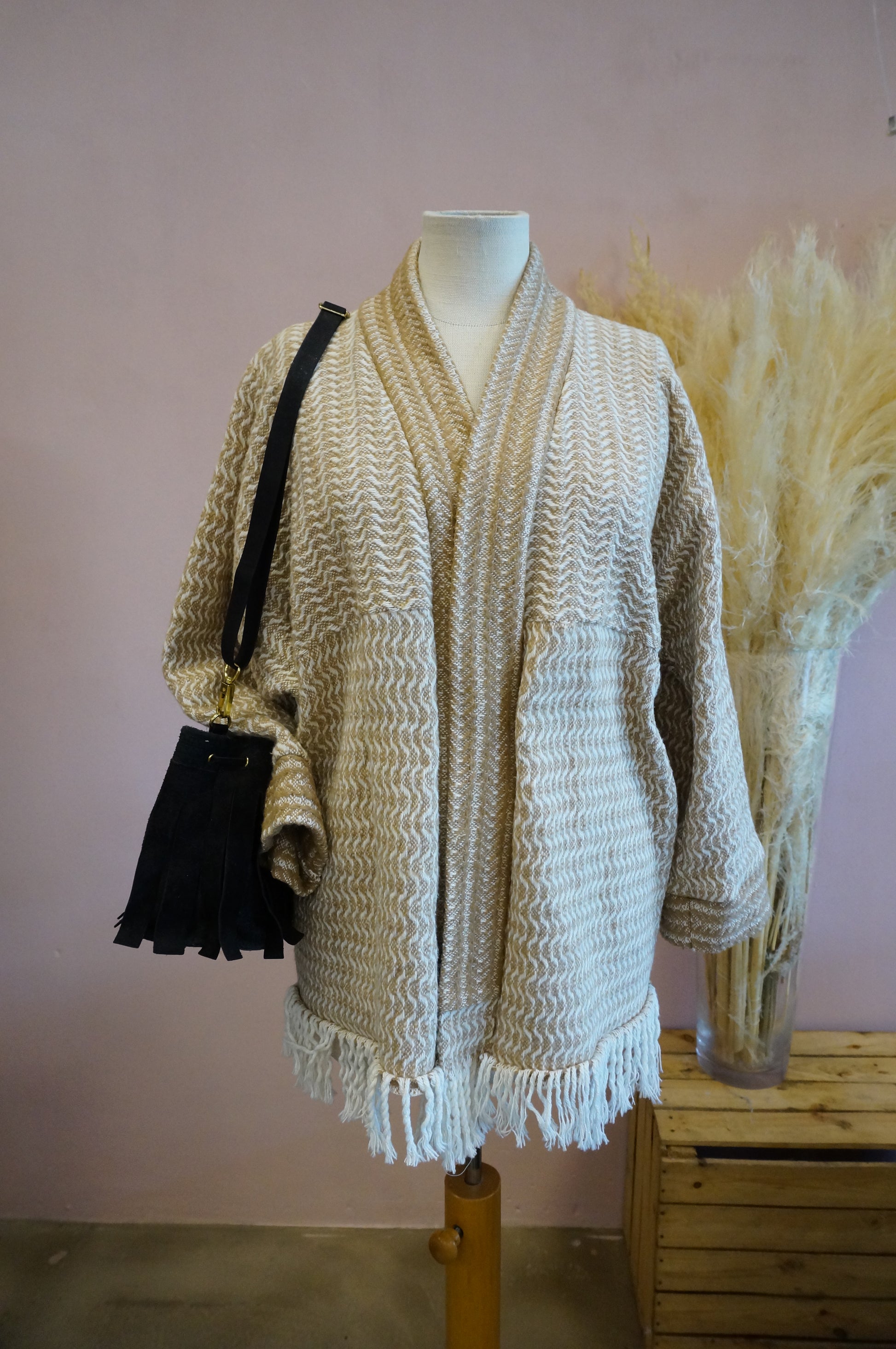 Bucket Bag Beuteltasche Umhängetasche mit Fransen aus Leder
