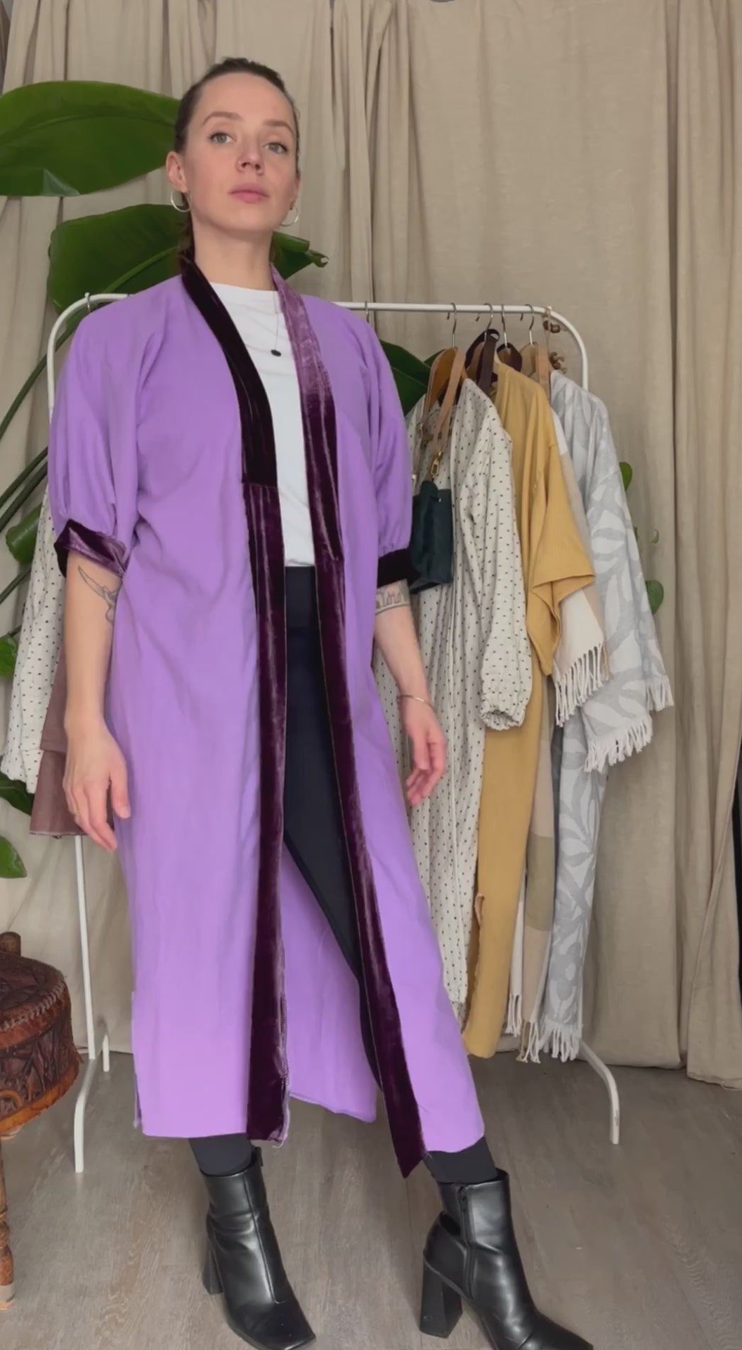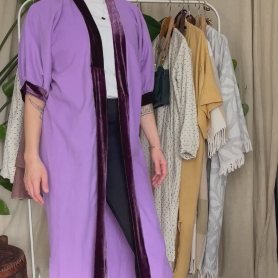 Midi Kimono, midi Cardigan Lila, Samt, Unikat