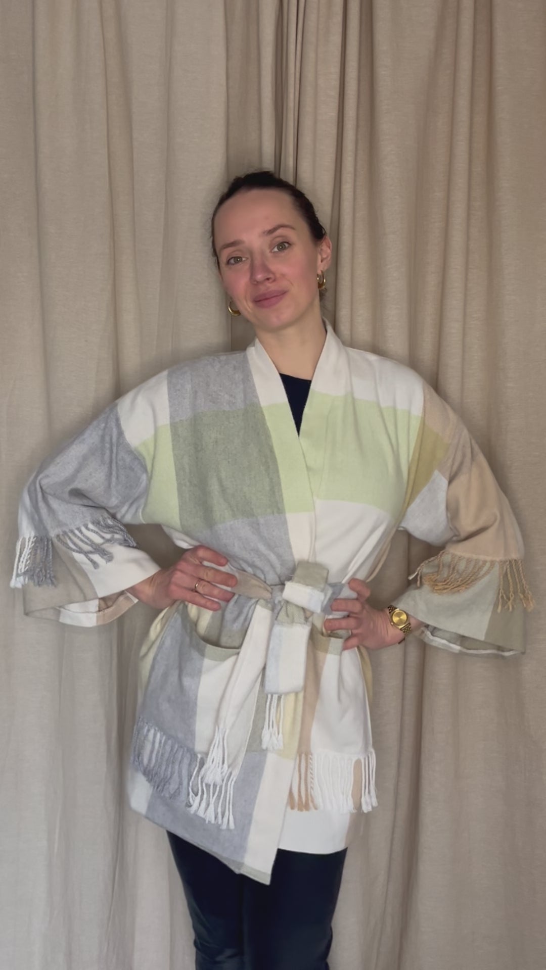 Kurzer Kimono – Kariertes Pastell | Unikat