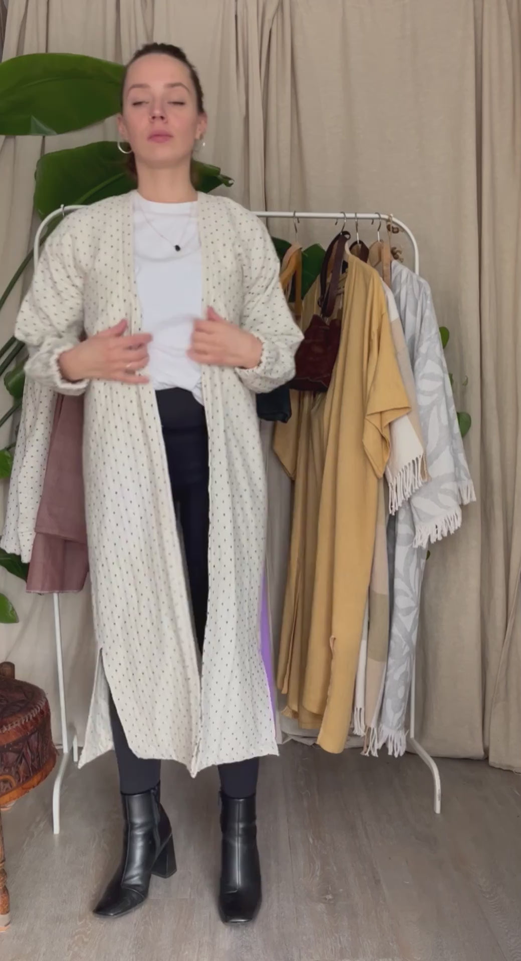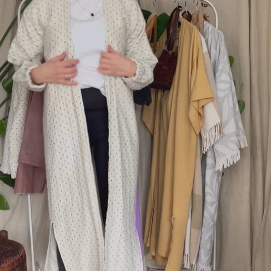 langer Kimono, creme gepunktet, 100% Baumwolle, Unikat
