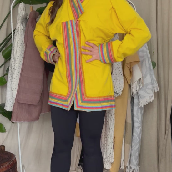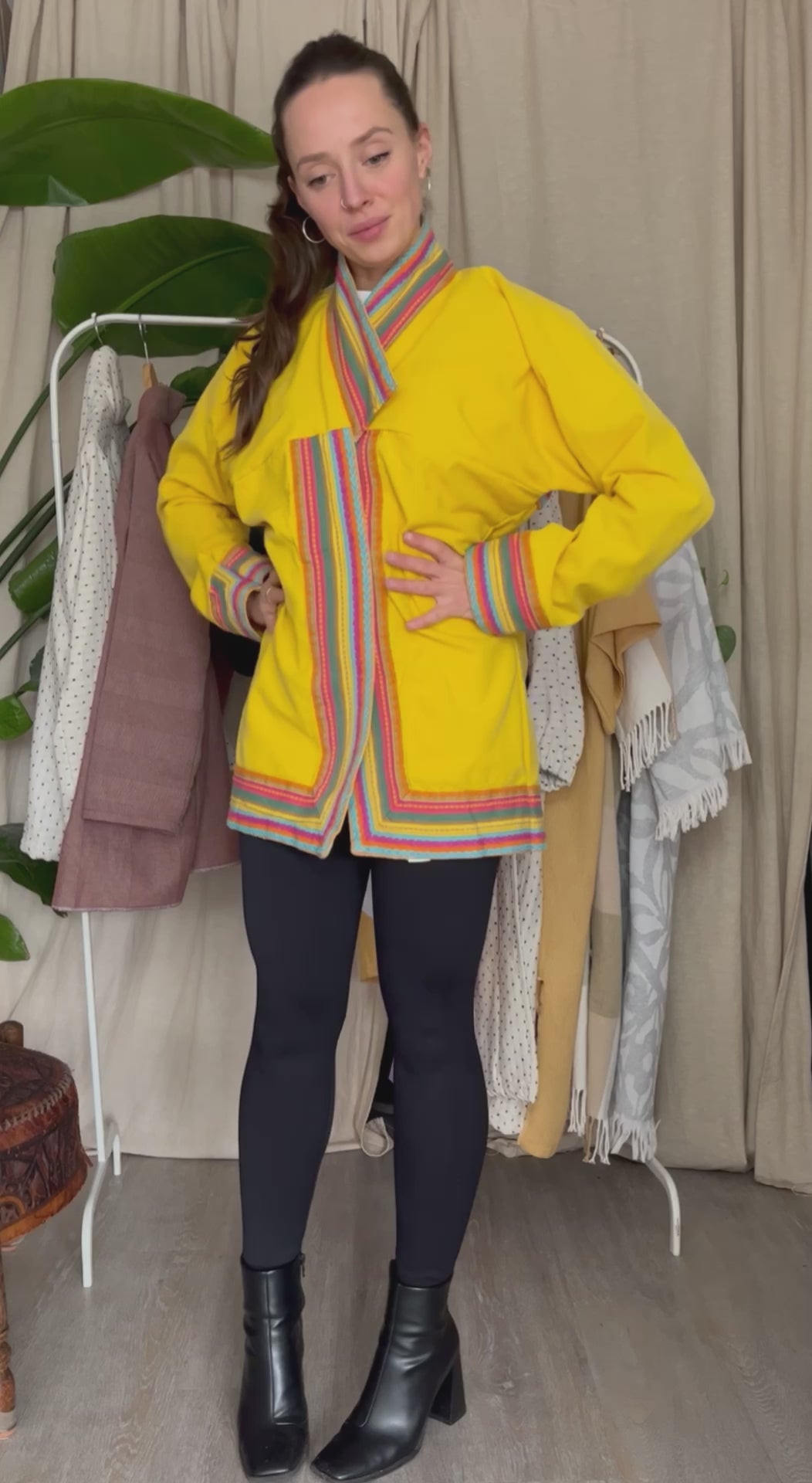 midi Kimono, gelb, Vintage, Boho Kimono, Loungewear, Unikat