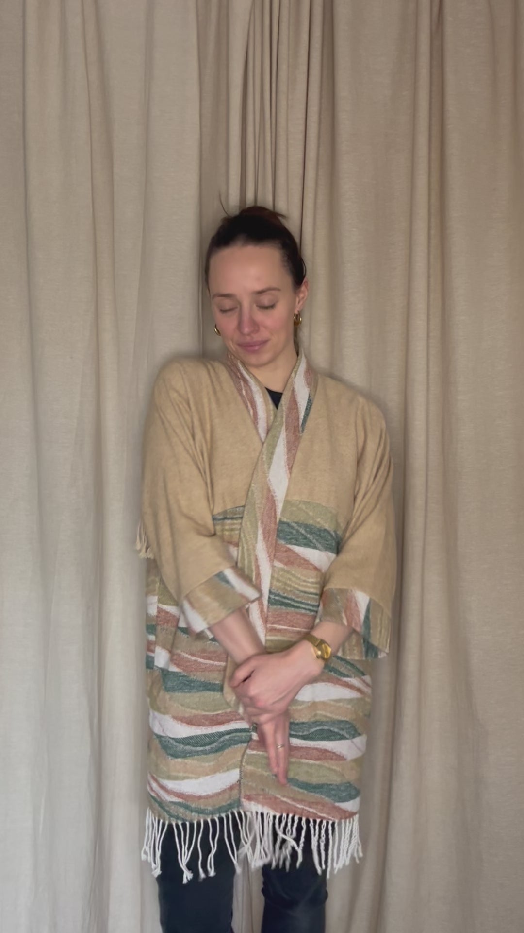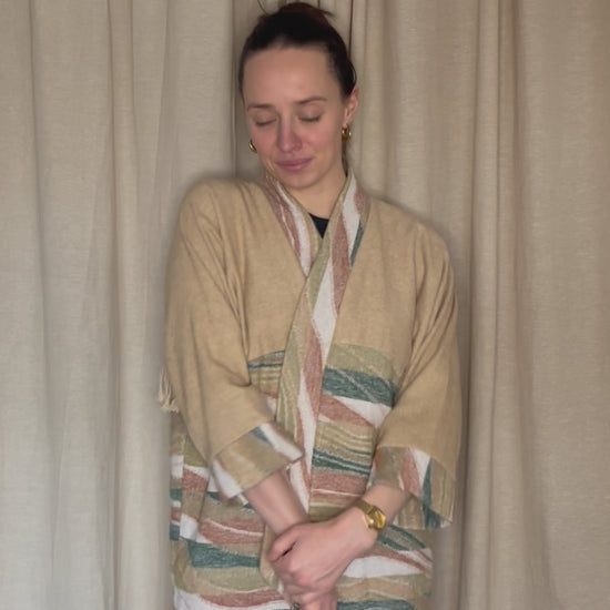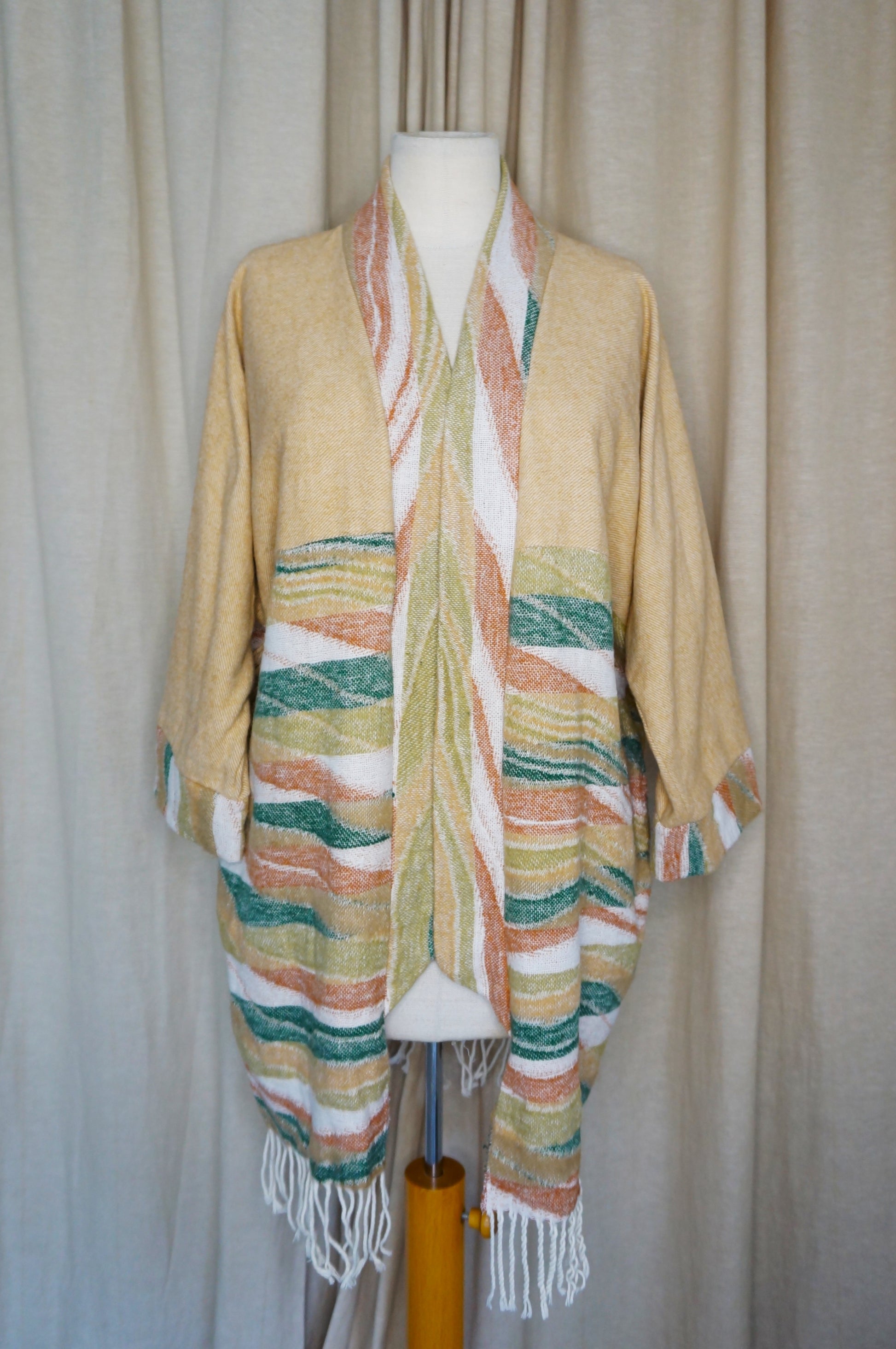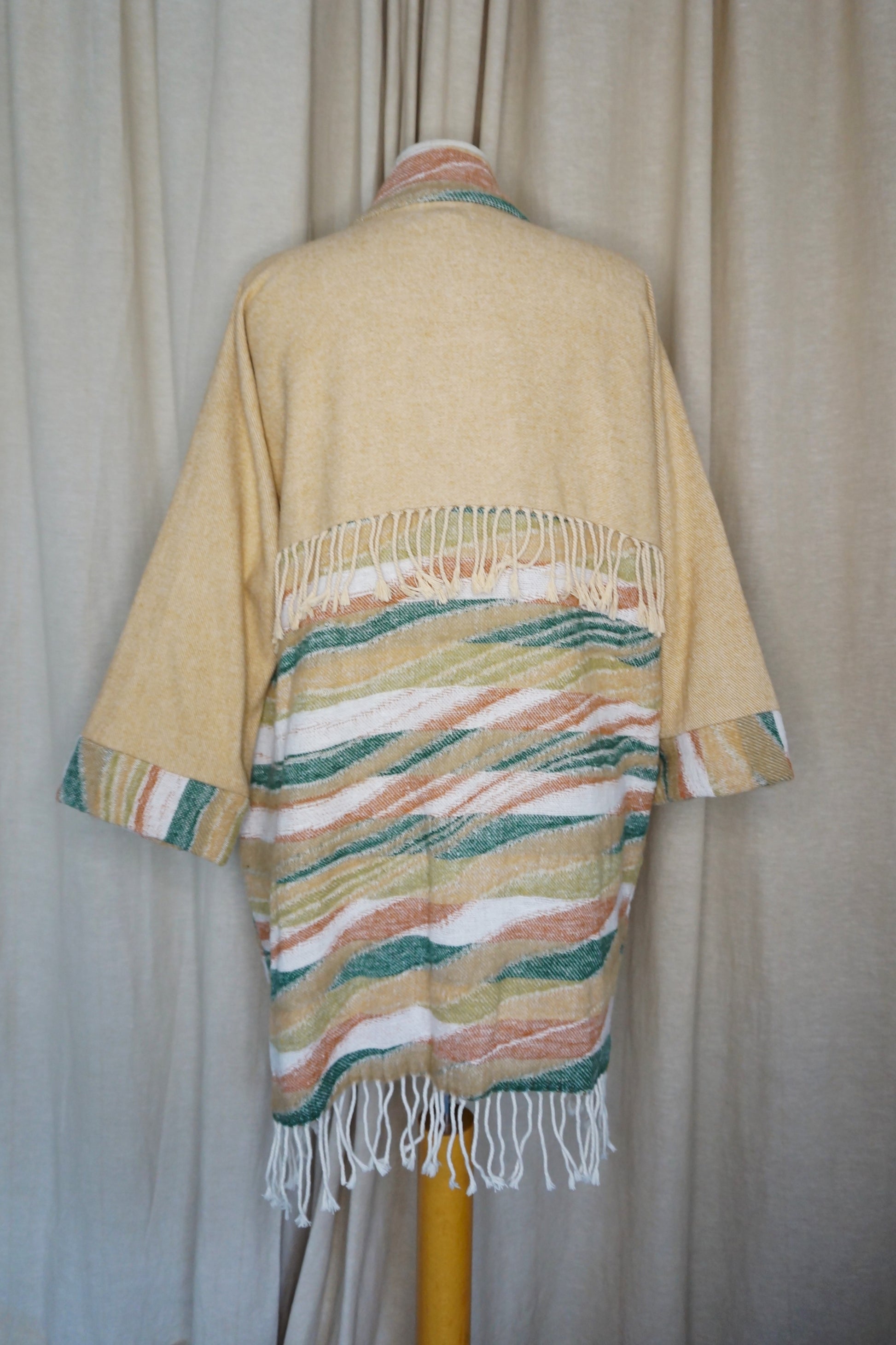 Retro Kimono – Beige & Terracotta Fransen | Unikat
