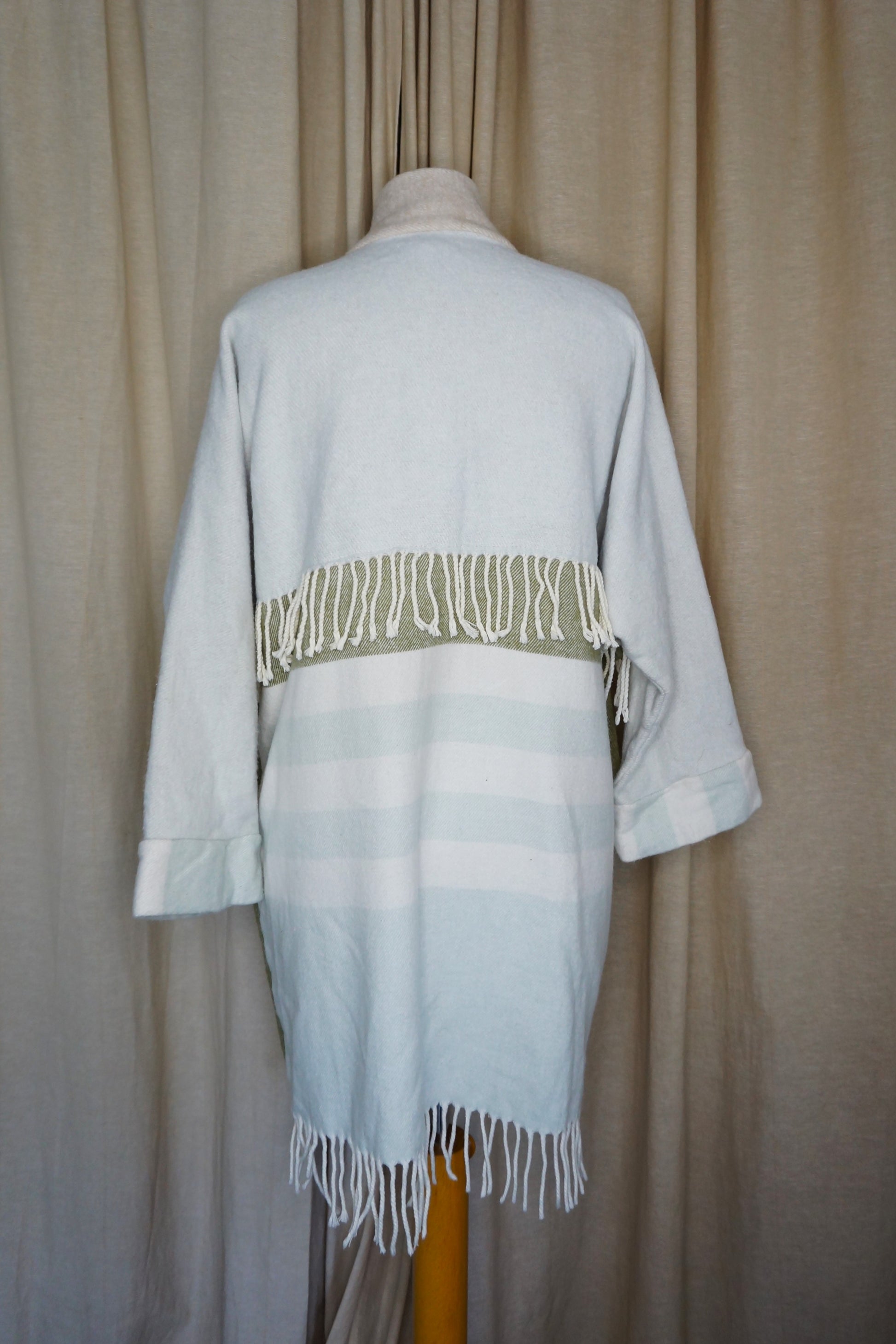 Retro Kimono – Blau & Grün Fransen | Unikat