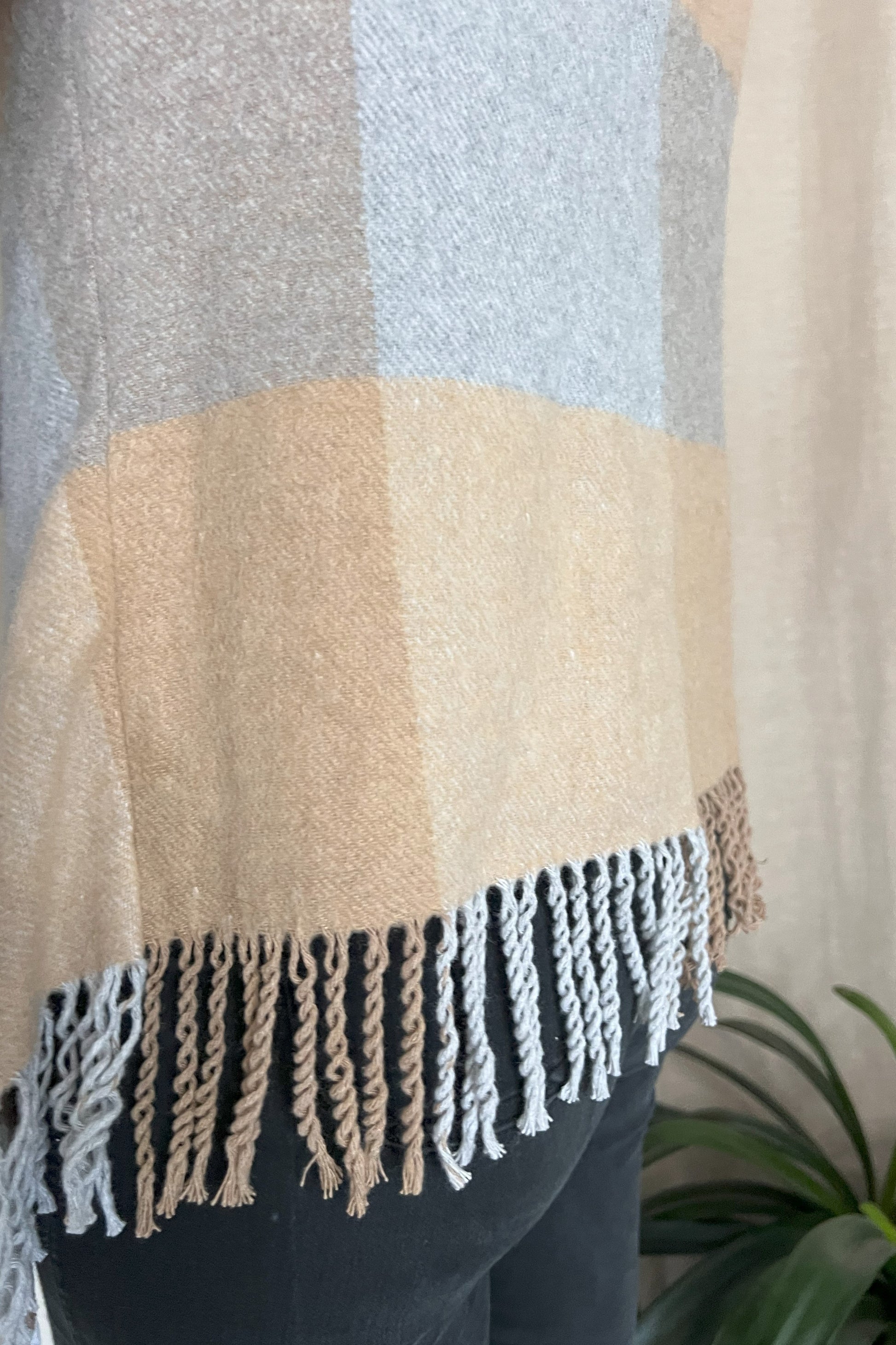 Schmale Weste, grau beige kariert, flauschig, S-L, Unikat