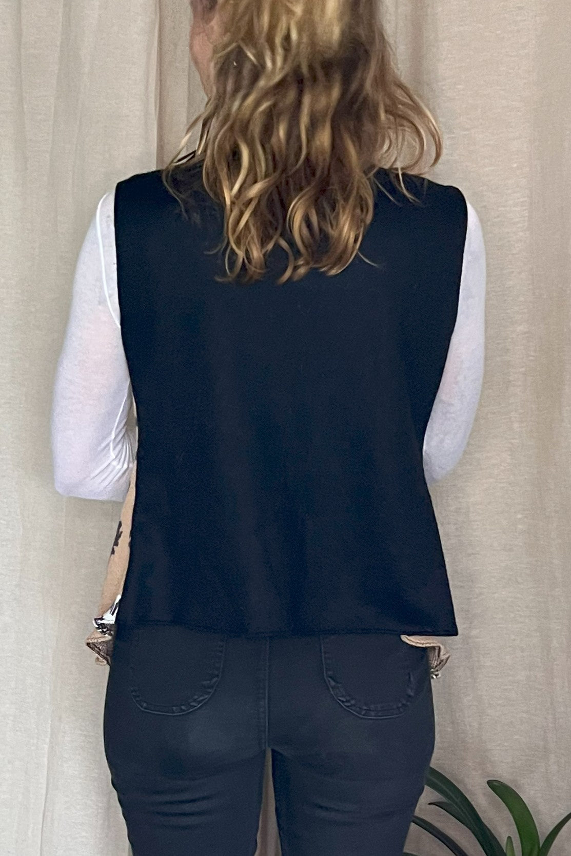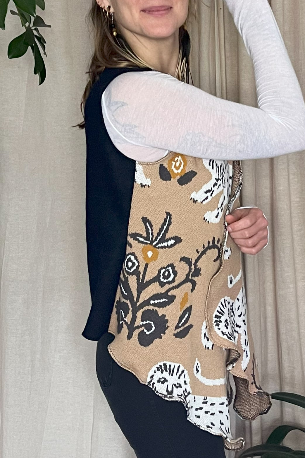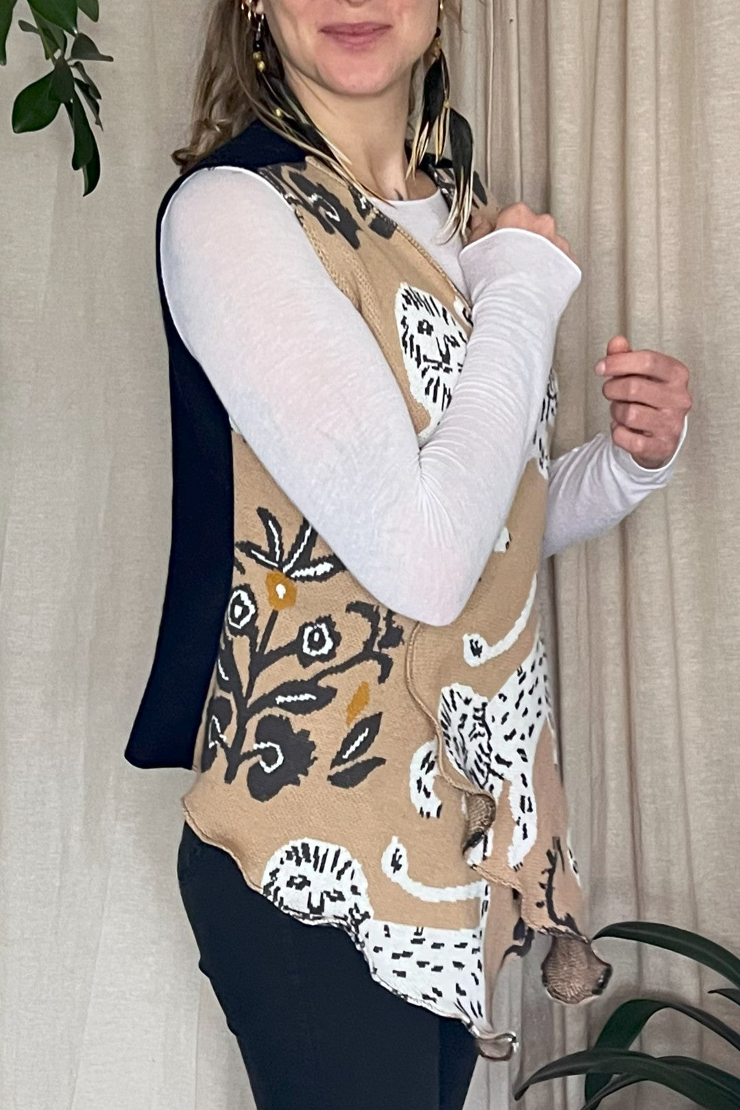 Schmale Weste, Leomuster schwarz, Wolle, S-L, Unikat