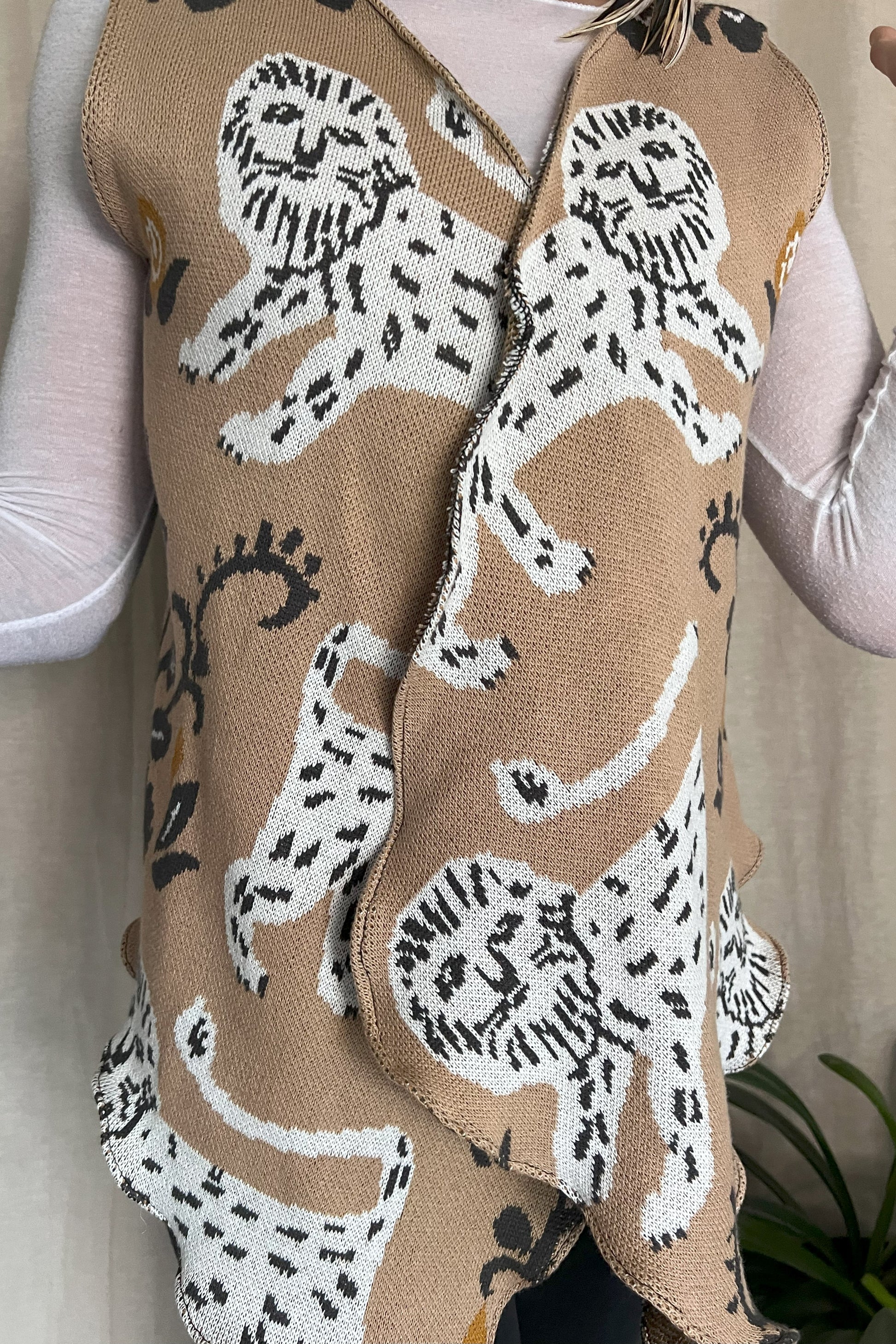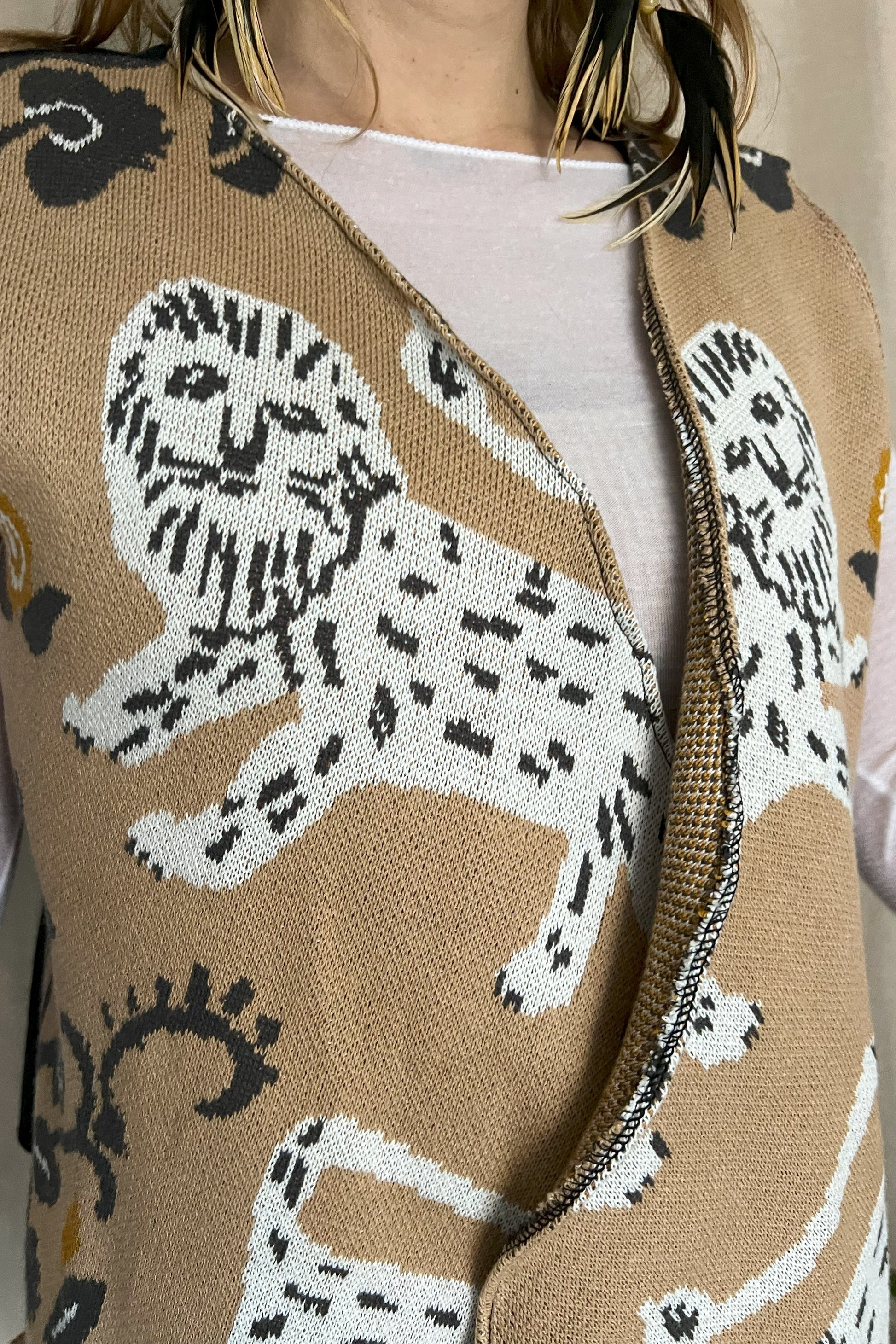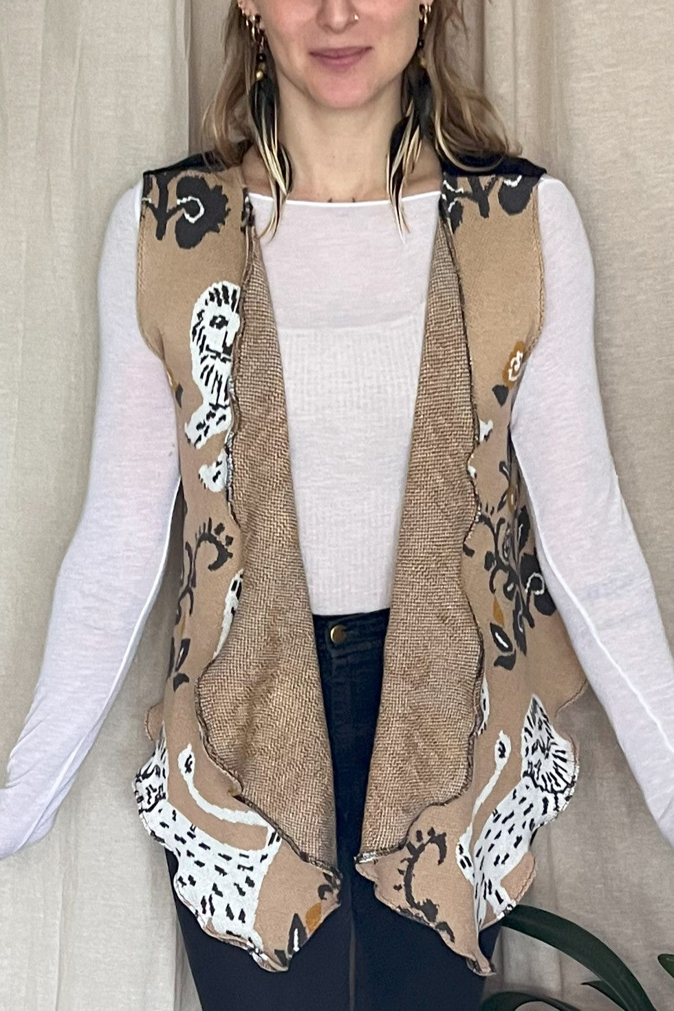 Schmale Weste, Leomuster schwarz, Wolle, S-L, Unikat